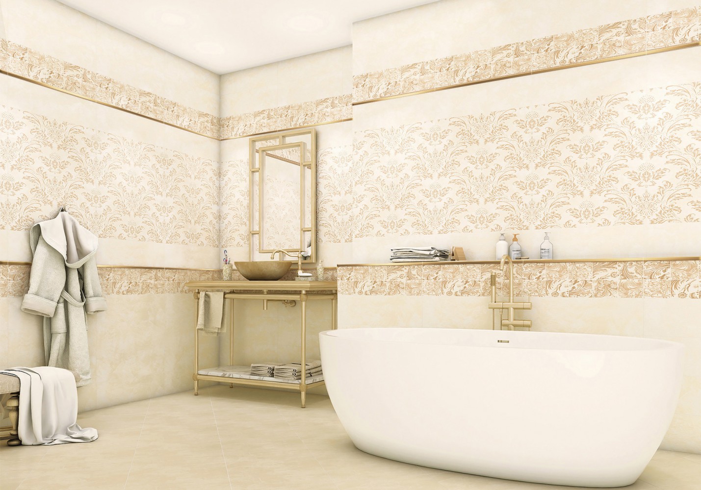 Плитка бордюр 1x60 8мм BW0TNR09 Tenor Gold Реджина / Rejina глянцевая AltaCera
