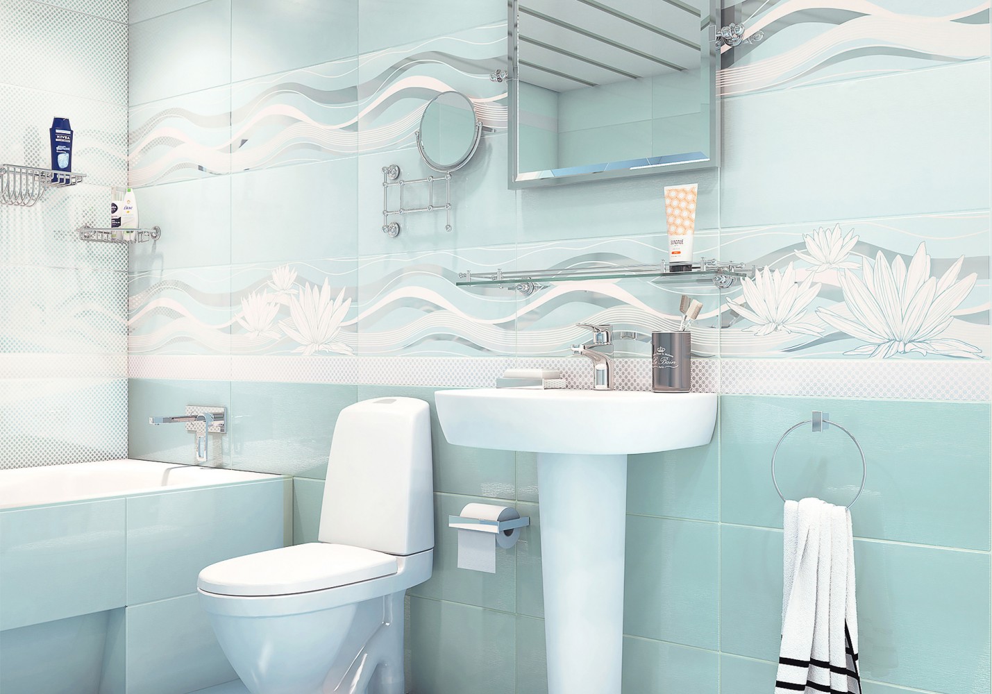 Плитка настенная 25x50 8мм WT9LST16 Luster Aquamarine Флюенс / Fluence глянцевая AltaCera